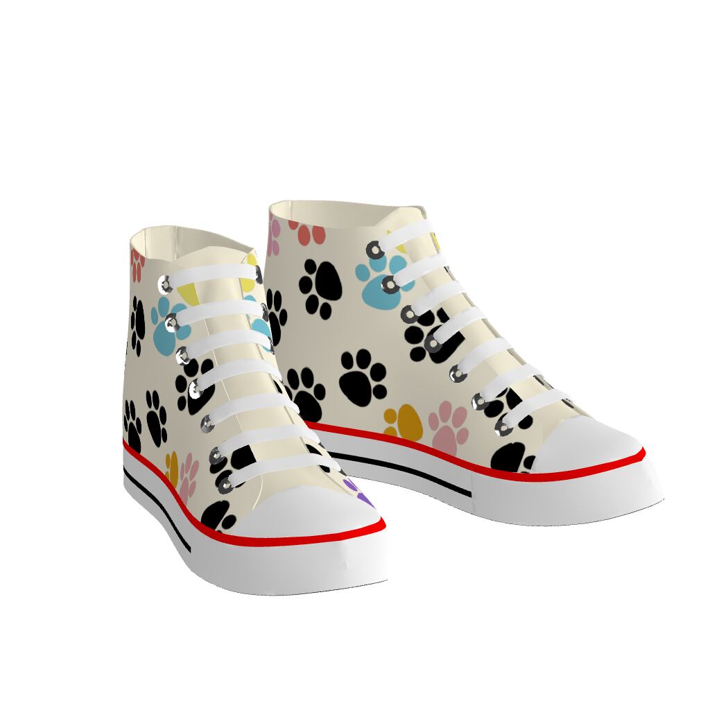 かわいい犬の足跡柄のレディースハイカットスニーカーLサイズ。