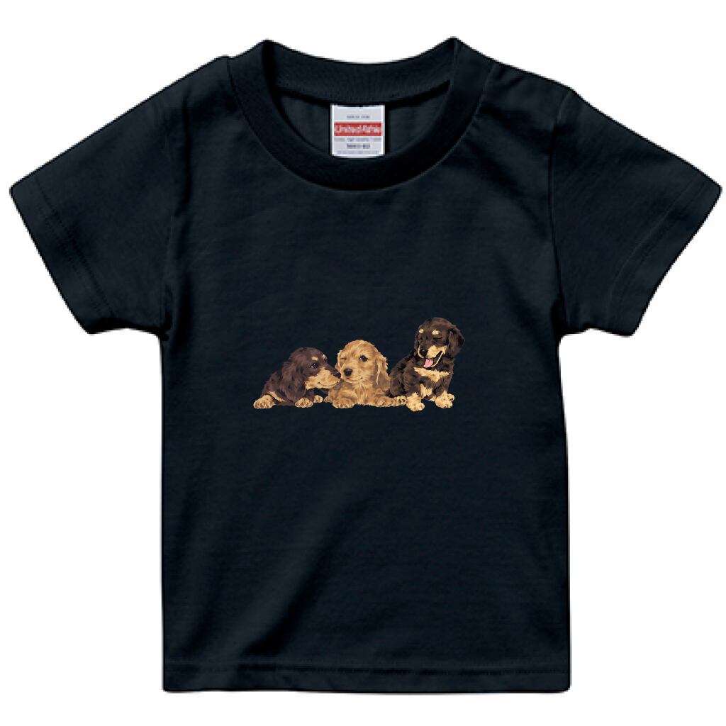 かわいいダックス柄ネイビーのキッズ用Tシャツ。