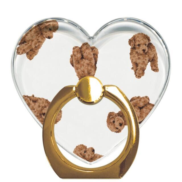 トイプードル柄をモチーフにしたハート型スマホリングです。